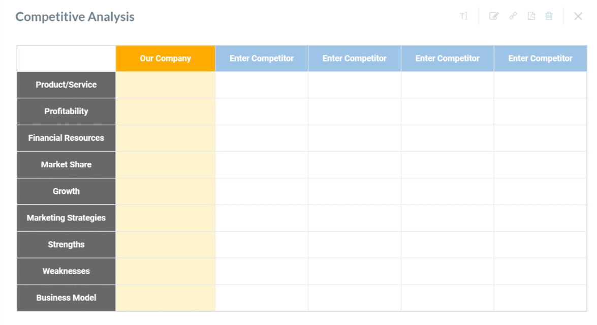 The whole idea is to gauge your strong and weak points against your competitors. Poke holes into their strategy to see how to capitalize and get ahead.